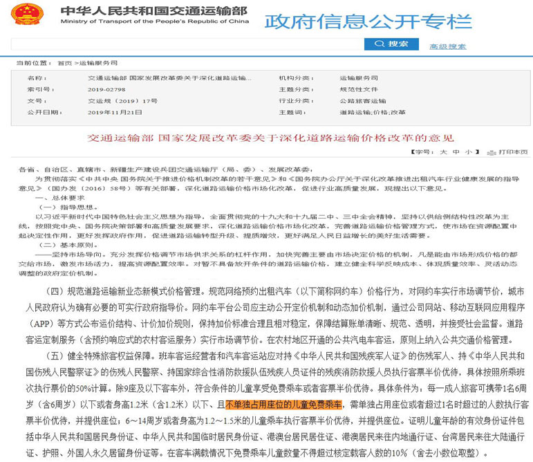 同時《意見》還明確,到2020年,道路運輸競爭性領域和環節價格基本放開,保留實行政府定價、政府指導價的道路運輸價格動態調整機制有效建立,道路客運、出租汽車等領域經營者價格行為更加規范,主要由市場決定的道路運輸價格形成機制和科學、規范、透明的道路運輸價格監管制度基本健全,價格機制引導資源配置、促進行業高質量發展、滿足人民群眾出行需求的作用明顯增強。