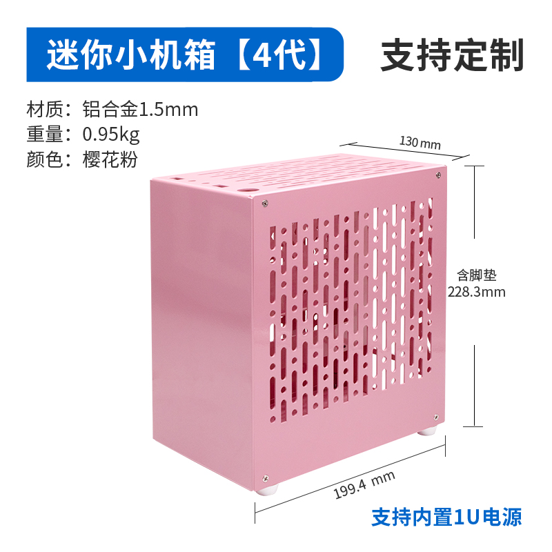 我們針對前幾款小機箱的特點,工程師此次研發出了四代小機箱,它不僅可以裝配內置1U電源,同時還搭配了前置的usb和音頻接口,日常使用非常的方便。